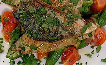 Divide the stuffing into 4 and stuff into the cavities. Lay the fish in a single layer in a large baking dish, pour the liquor over the fish, cover with tin foil and bake for 30 minutes at 190 C. Serve hot or cold. |