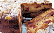 Whole cherries from above Flaked almonds Demarara sugar | Arrange the cherries on top of the mixture and sprinkle with the almonds and sugar. Bake in a pre-heated oven at 190C for 40 minutes |