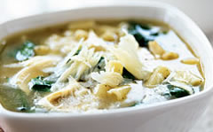 Drop into the boiling stock and simmer for 3-4 minutes until the pasta and chicken are cooked |