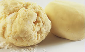 Cut the lard and butter into cubes and lightly rub into the flour until the mixture forms a crumbly texture |